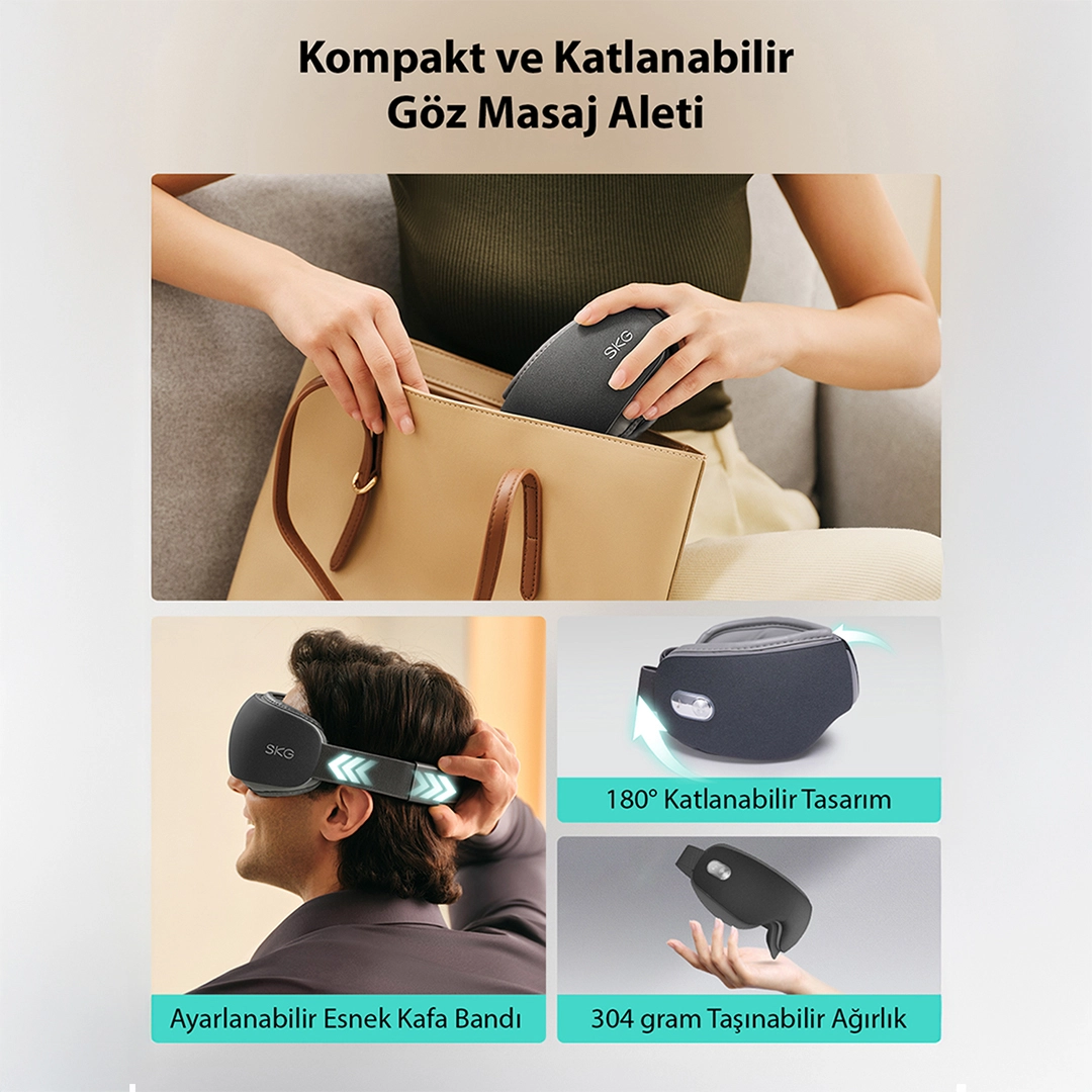 SKG KS700-E Akıllı Göz Masaj Aleti, eşsiz ve üstün mühendisliği sayesinde gelişmiş soğuk–sıcak kompres teknolojisi, titreşimli masaj ve hava yastıkları desteğiyle göz çevresini rahatlatmaya ve günlük göz bakımını desteklemeye yardımcı olmak üzere tasarlanmıştır.