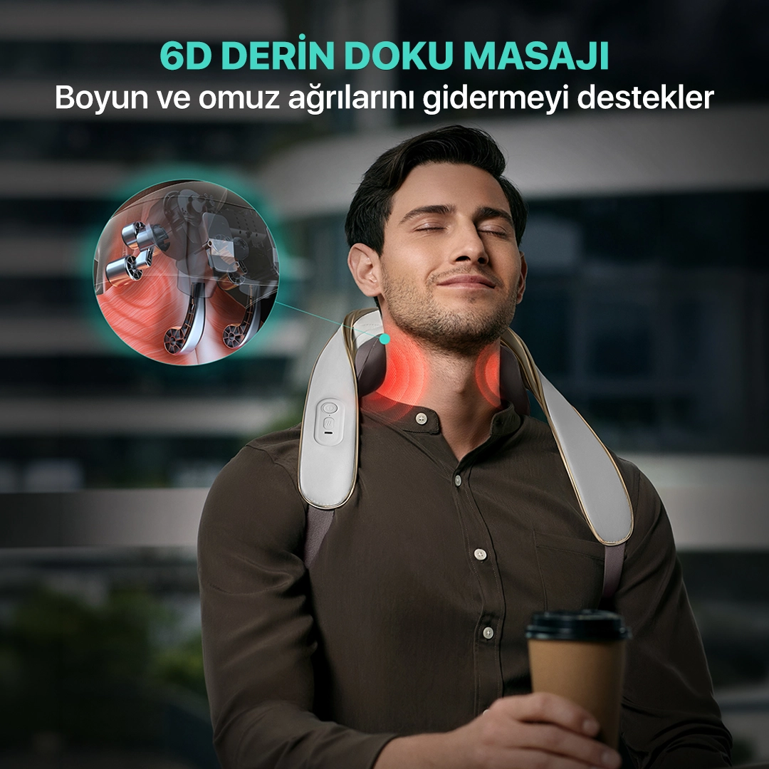 Cihaz, insan elinin masaj hareketlerini taklit eden 6D masaj başlıkları ile çalışır ve termoterapi ile kasları ısıtarak rahatlatır.