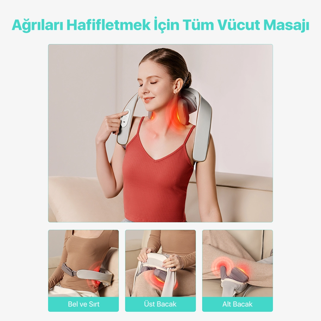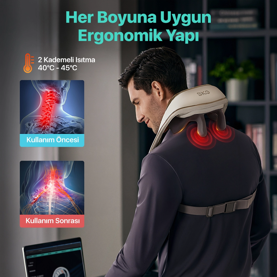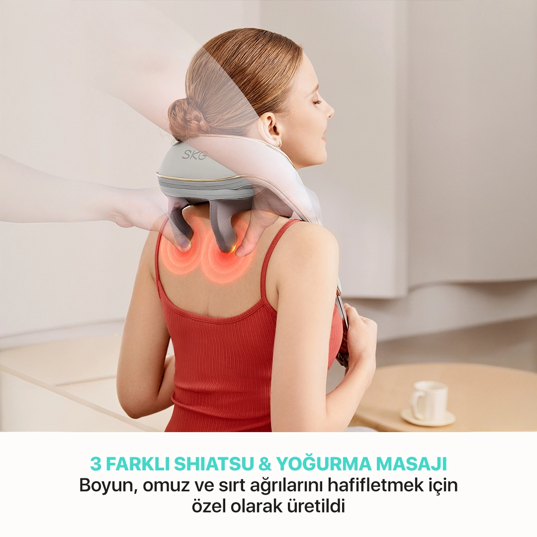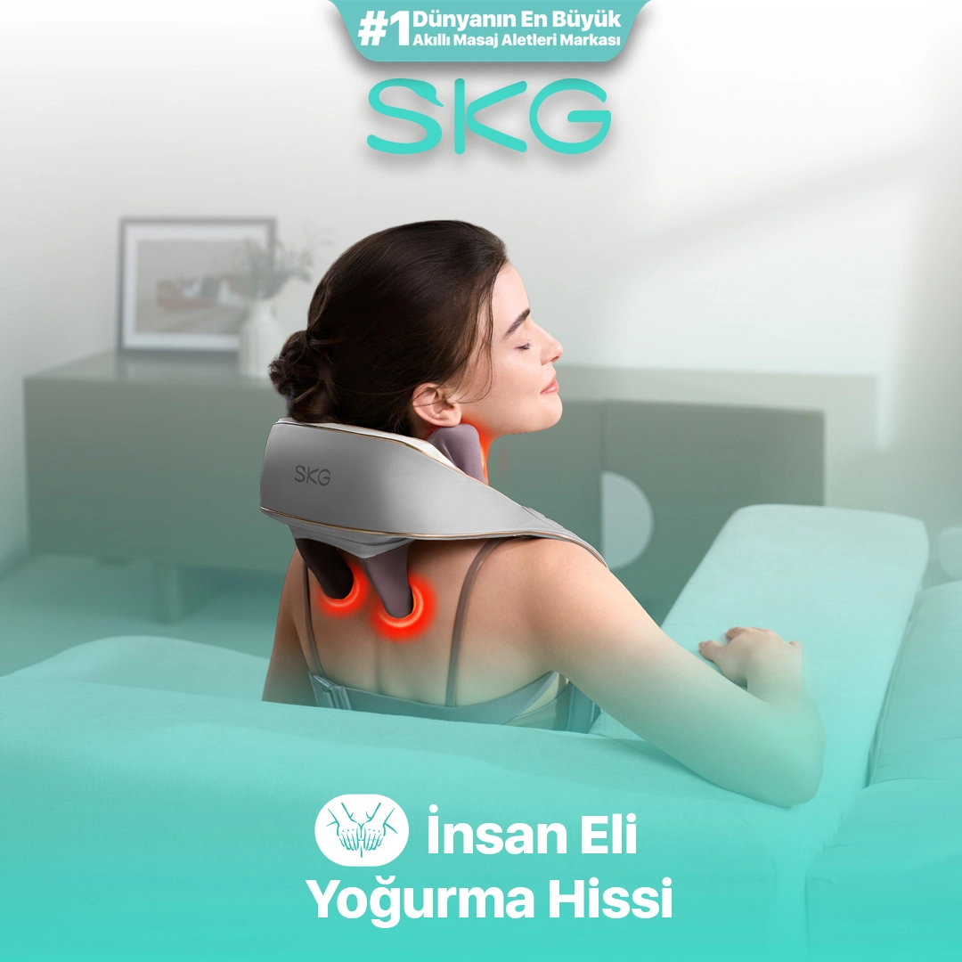 SKG H7 Ultra Boyun & Omuz Masaj Aleti, geleneksel Shiatsu masaj terapisi ve kızılötesi ışık fototerapisi özellikleriyle öne çıkıyor.