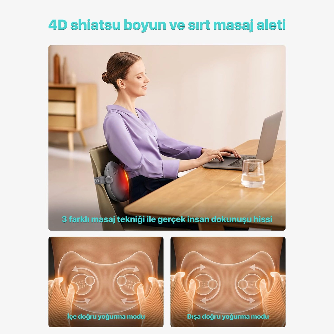 4D Shiatsu masajı, derin yoğurma ve geniş alan ısıtma gibi çeşitli masaj teknikleri sunar.