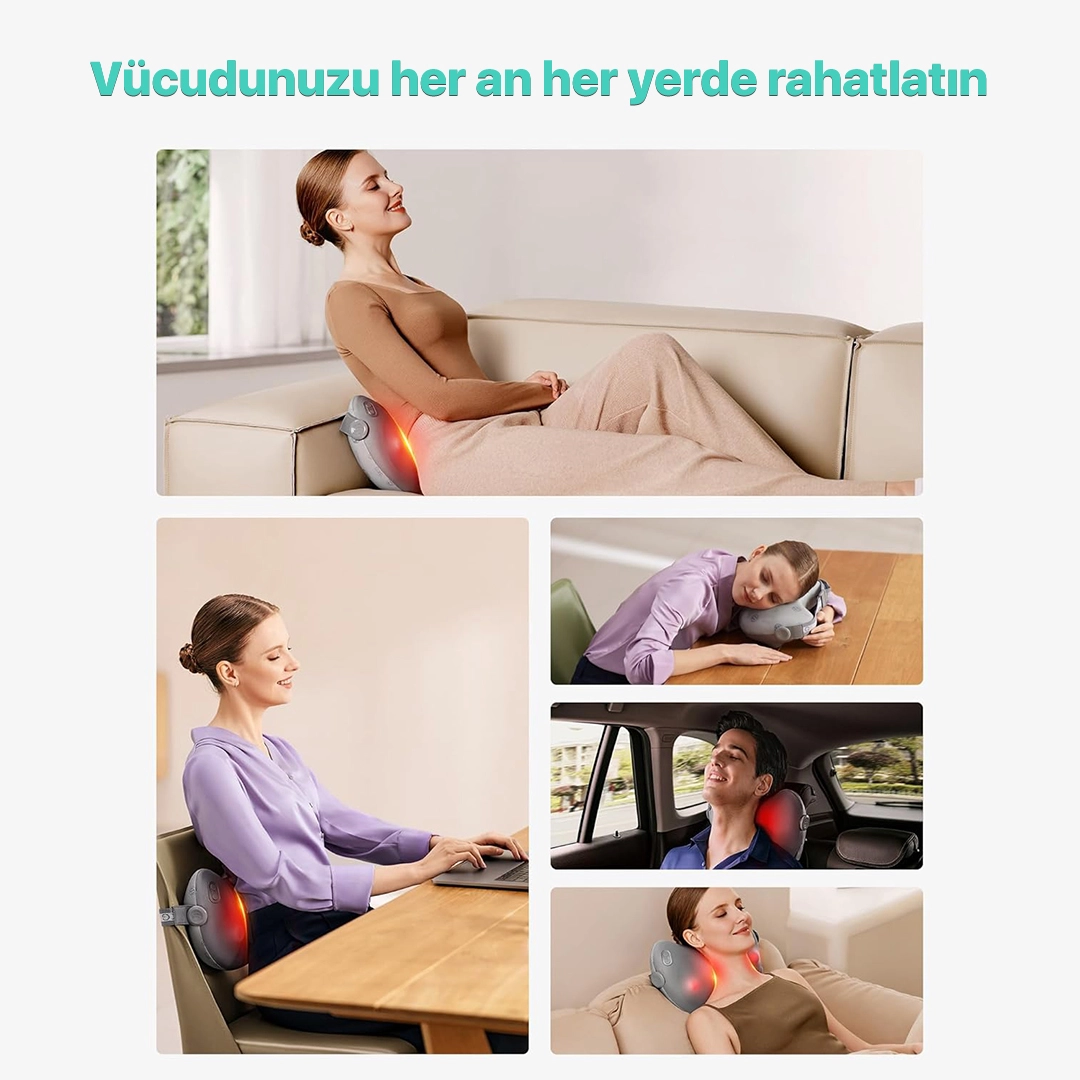 Bu masaj yastığı bel, kalça, sırt, omuz, boyun ve bacaklar gibi vücudun çeşitli bölgelerinde kullanılabilir.